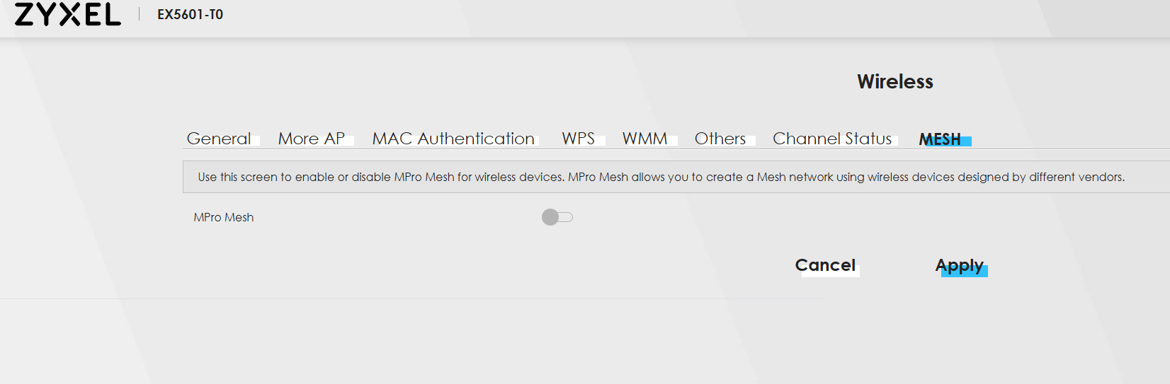 So in the wireless settings MPro Mesh cannot be enabled. I have tried changing security settings and turning WPS on and off but its still the same. My firmware version is
