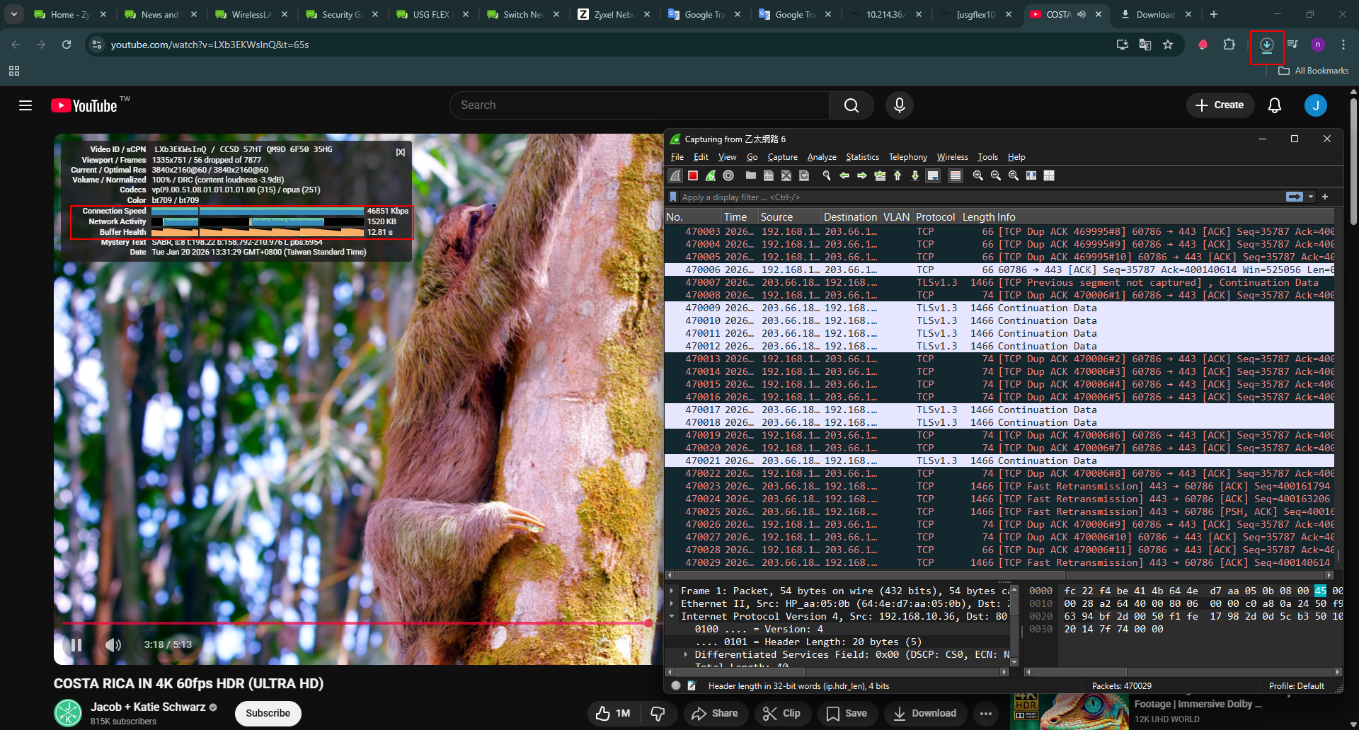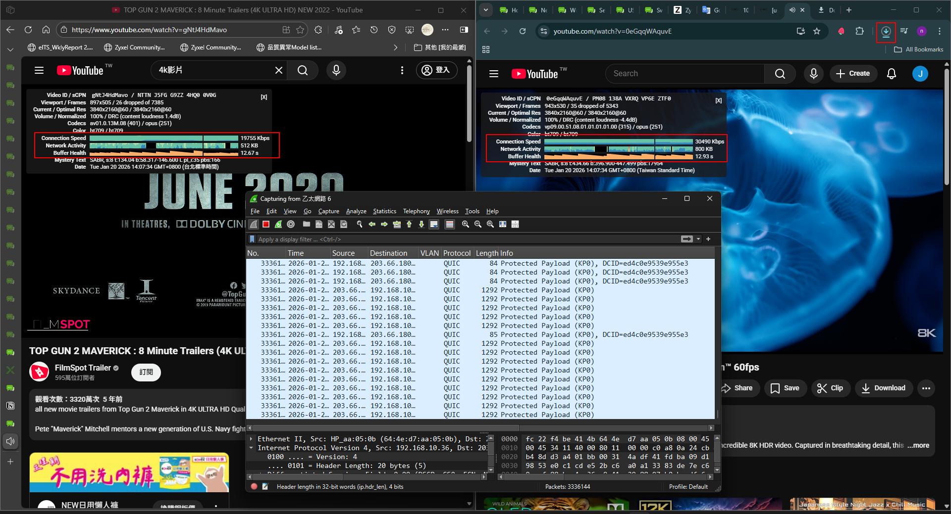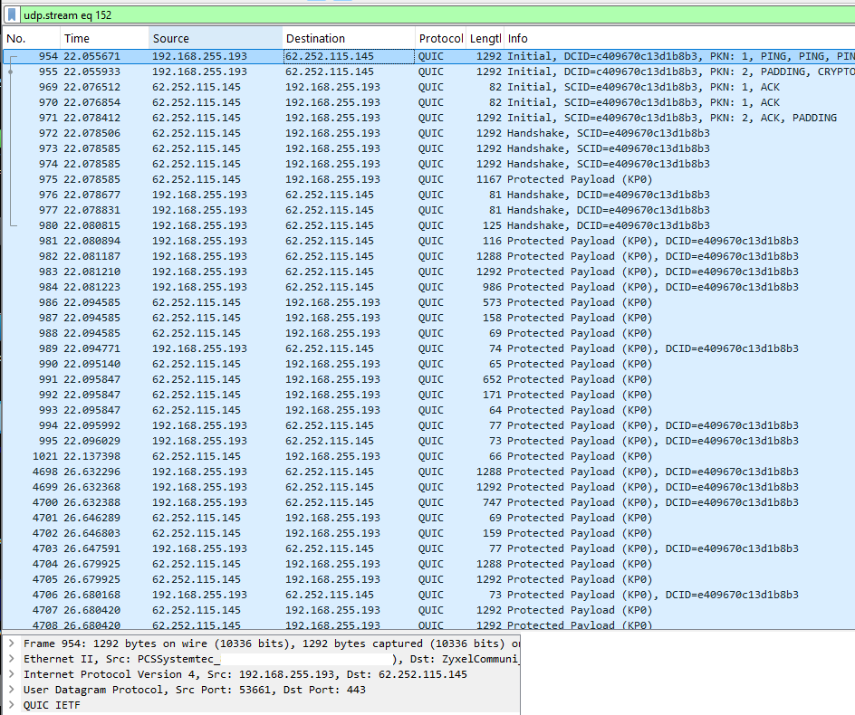 So now allow UDP 443 and run the above Video (check by Wireshark) and do the same test and the Video does not buffer this is wrong with the added download file and number of threads it didn’t buffer and it should.