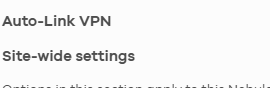 - Screenshots: Any error messages or VPN connection status from the Nebula Control Center for the site-to-site VPN.