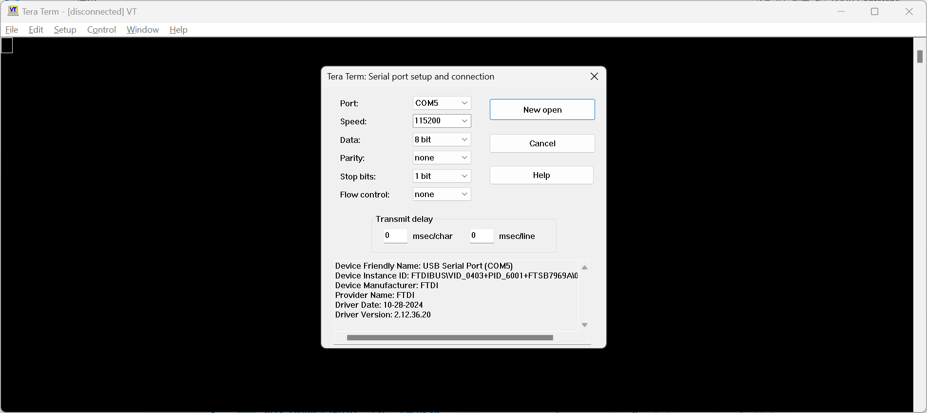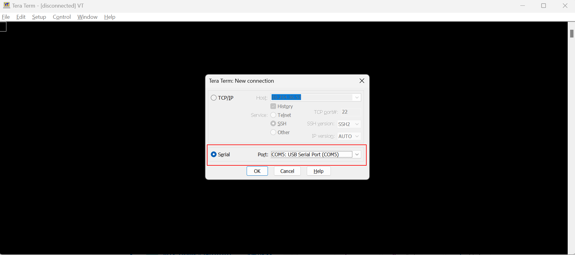 To change the console port setting for Tera Term, the path is Setup > Serial port.