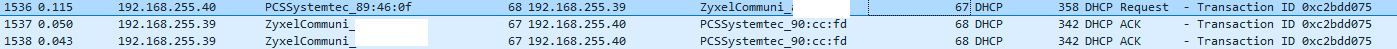 So now the NIC gets this IP 192.168.255.40 for MAC PCSSystemtec_89:46:0f by DHCP which all looks fine gateway 192.168.255.39 with ARP
