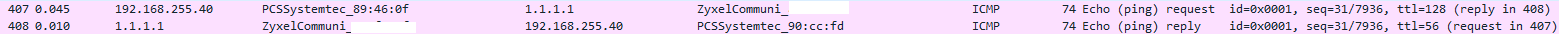 Then 192.168.255.40 pings 1.1.1.1 but the reply is to MAC PCSSystemtec_90:cc:fd that the USG is sending too.