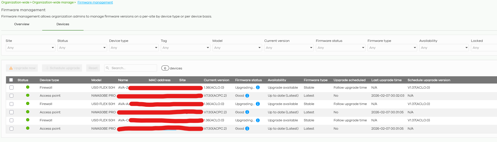 No positive results for all the devices I was "Upgrading" looking at the Nebula web UI.