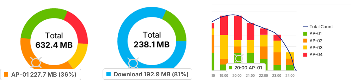 - Single Entity View: Provides an hourly breakdown of upload and download traffic for specific APs or clients.
