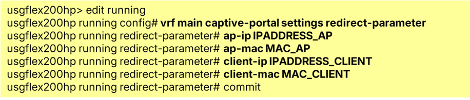 When using third-party portals like Purple Wi-Fi, specific attribute names are often required (e.g., using "user_mac" instead of the default "client_mac"). Administrators can now customize these attribute names and the MAC delimiter via the CLI. Additionally, the firewall now supports the HTTP GET method for redirects, whereas it previously only supported POST.