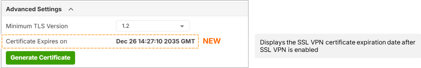 A new visibility enhancement in version 1.37 allows administrators to monitor the validity period of SSL VPN certificates directly. Previously, users could not easily see when the certificate packaged in the provisioning file would expire.