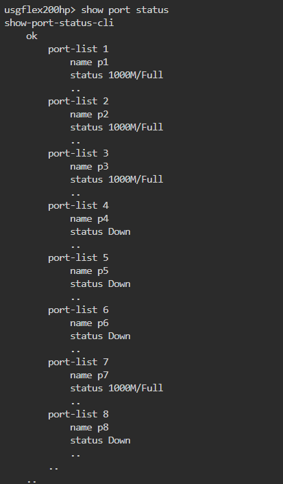 The user can use the CLI command show port status to check the port name and up/down status, as shown below: