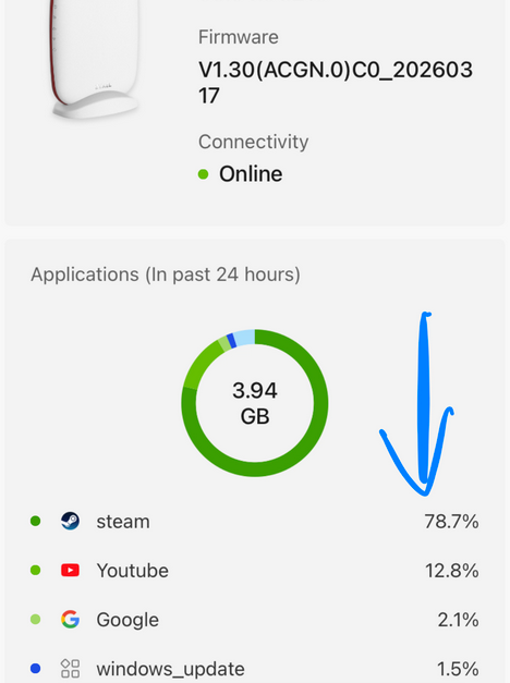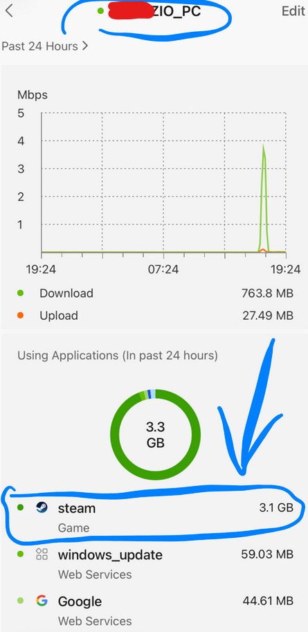 and I understand that about 79% of 4 gigs of traffic is the value of outbound traffic for "steam" app.