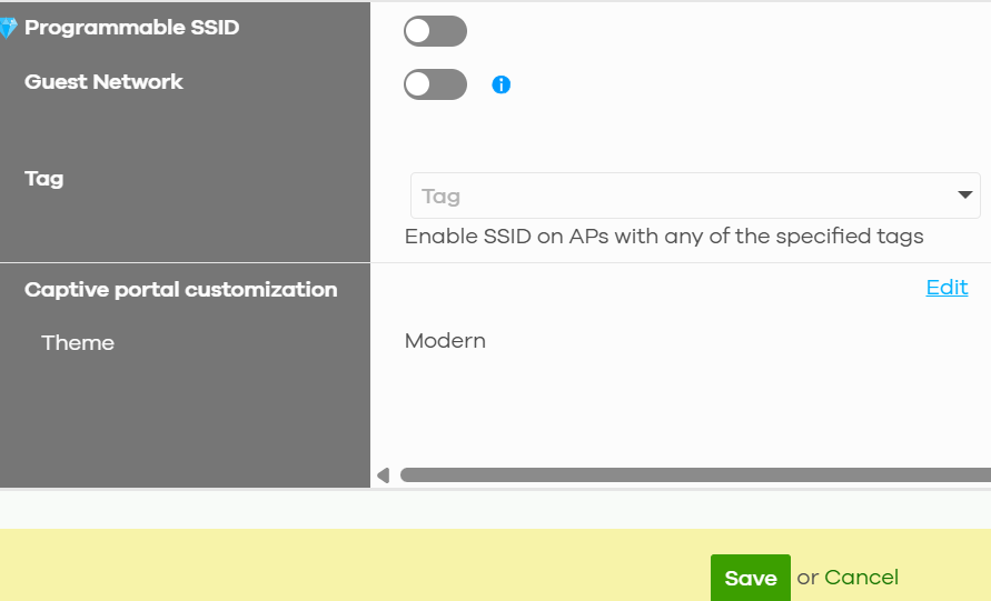 - Navigate to Site-wide > Configure > Access points > SSID settings