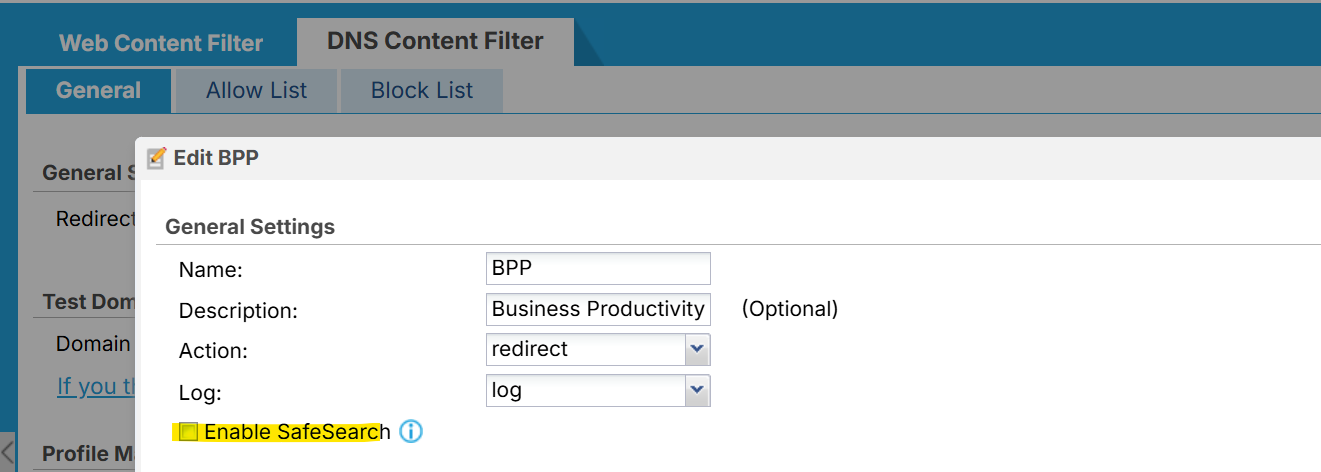 Please go to CONFIGURATION > Security Service > Content Filter > DNS Content Filter > BPP and check whether DNS SafeSearch is enabled. If so, please disable this option and verify whether your Android phones can update their apps on Google Play.If the issue persists after completing these steps, please download the configuration file and share it with us for further review.