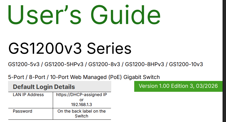 I ve just a bought a brand new GS1200-8v3 and I try to authenticate to the management console. When I try to do so and enter the password specified in the user guide "1234" I am told the password is invalid. I tried other passwords like "0000" or "12345678" but all those passwords are wrong.