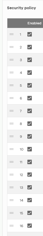 Nebula currently fully supports the sorting/moving functionality of Security Policy for desktop browsers. Mobile browsers are not yet officially supported, so you may encounter functional limitations when using mobile devices.