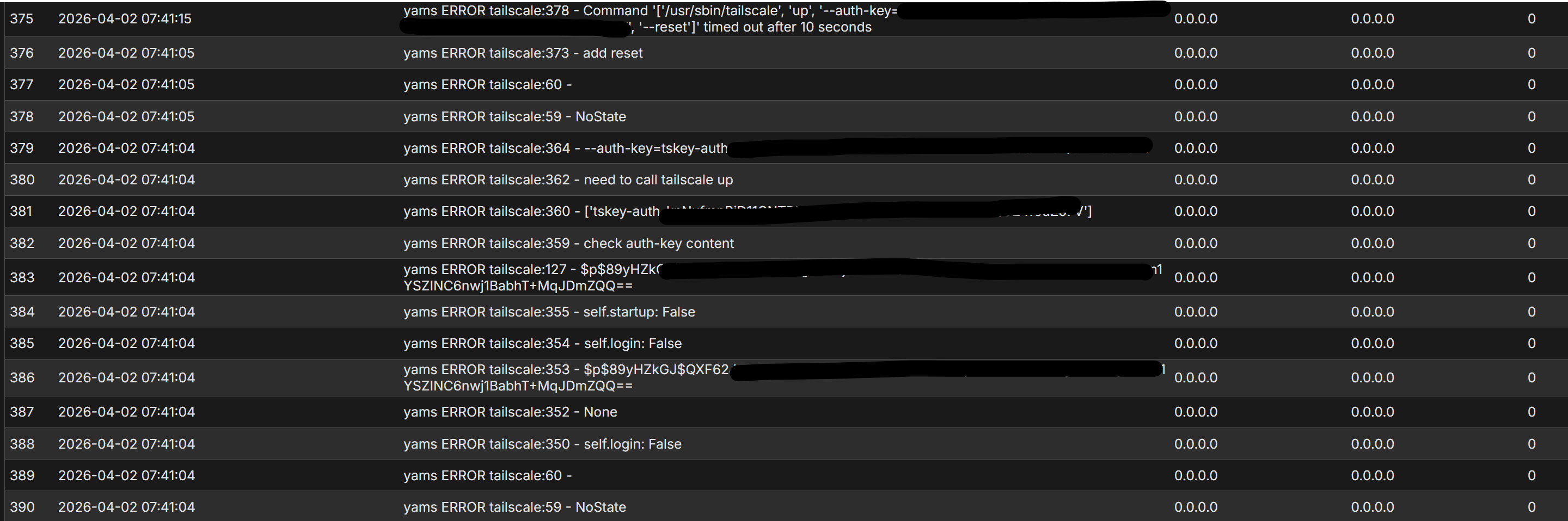 Every morning, I use automations to turn everything back on, and I'm finding that the firewall is no longer connected to the Tailscale network.