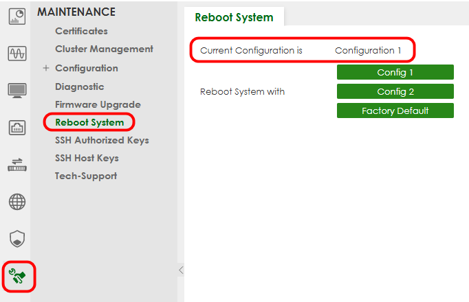 On Zyxel switches, when performing a warm reboot, users can choose to reboot with Configuration 1 or Configuration 2.