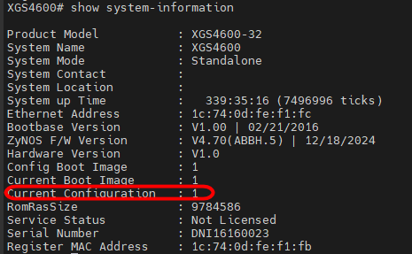 However, during a cold reboot (power cycle), the switch will boot using the current active configuration.