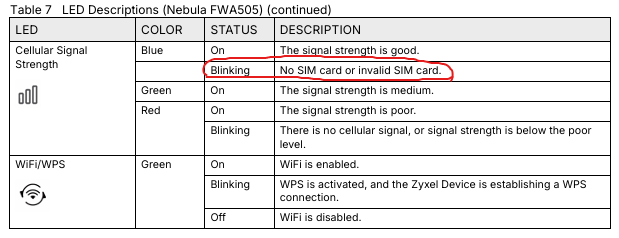 The flashing blue SIM LED on the FWA505 indicates the SIM card isn't being correctly recognized or authenticated. image.png Please ensure it's properly inserted and check its status in the local GUI (detailed Cellular info page).