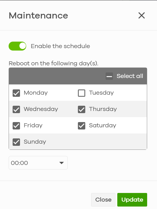 4. Choose the day and time you want to reboot AP