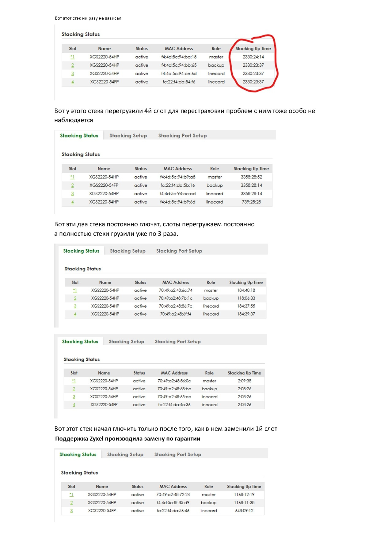 XGS2220 в стеке часто пропадает пинг, повисает один из слотов. Спасает перезагрузка одного из слотов