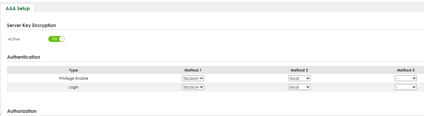 Возможна ли авторизация локальной учетной записью на коммутаторе GS2220, GS1900 при настройке Method 1 tacacs+ и сервер tacacs+ доступен.