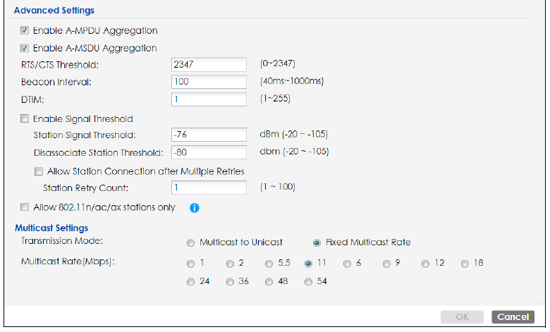 WLAN Rate 控制是讓用戶設置 AP 基本傳輸速率的功能。