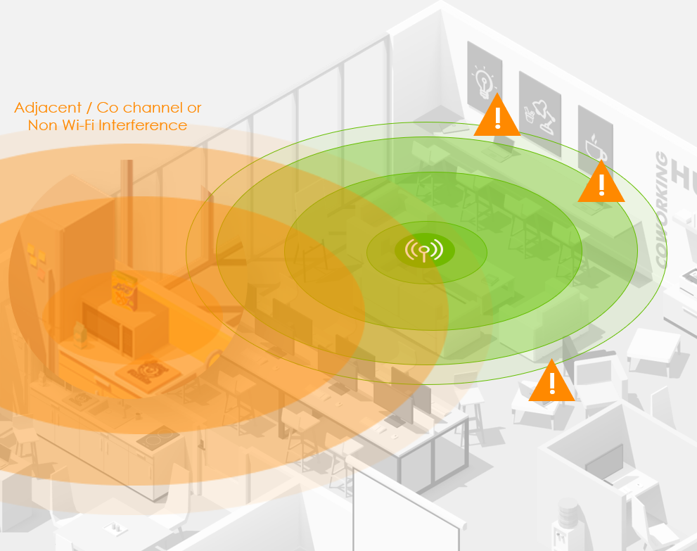 如果您有微波爐或任何其他以相同頻率發送訊號的設備,就會造成干擾。也可能你在辦公大樓裡,有很多公司都有自己的 WiFi,他們的 WiFi 訊號可以到達你的 WiFi 環境,這也將會產生衝突。