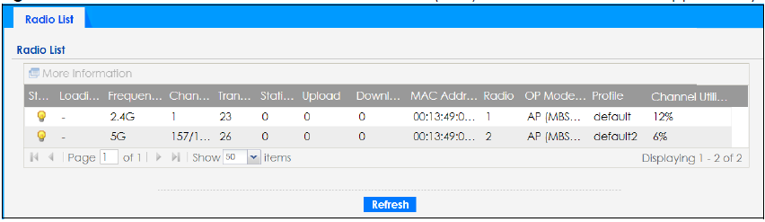 Go to Monitor -> Wireless -> AP Information -> Radio List