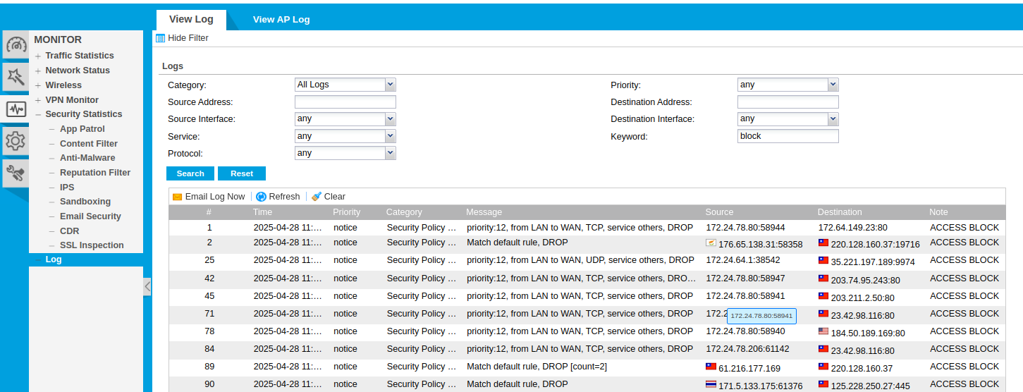 當然, 前提示你的 security policy 設定裡要開啟 log 設定