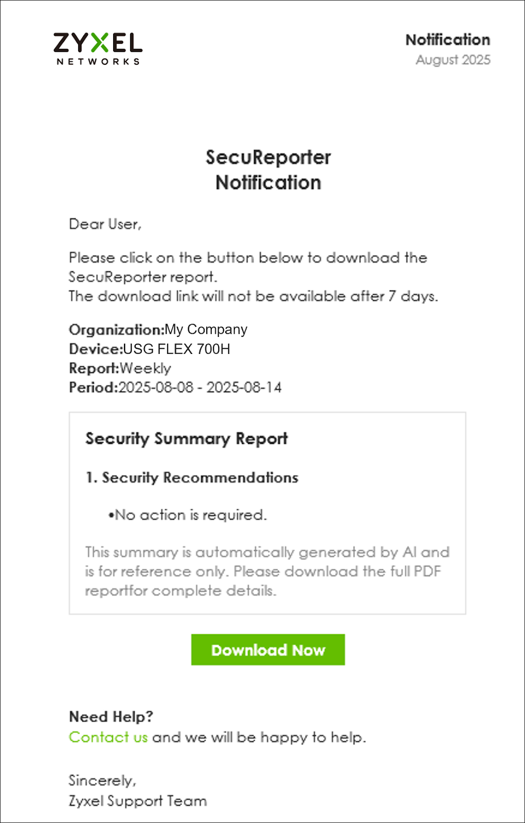 - 無縫使用體驗:無需額外設定或工具,若您的裝置已擁有 SecuReporter 授權,自動享有此功能。