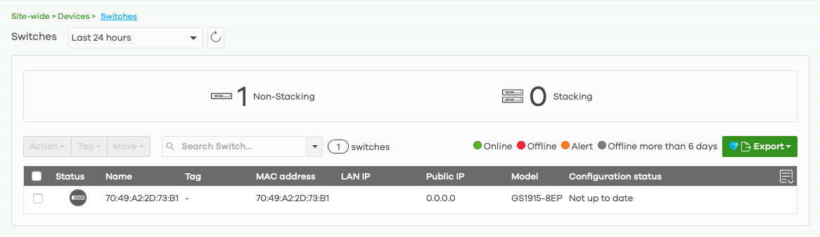 新購GS1915-8EP在Nebula app和NCC裡都顯示offline
