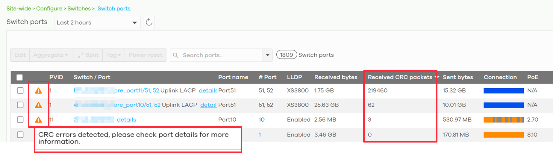 當您看到某個 Port 出現紅色的「CRC Error」或狀態不佳: