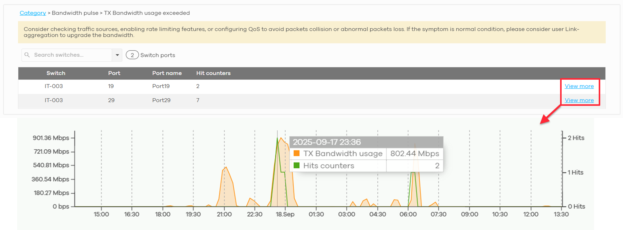 注意:若因交換器重啟等原因導致事件日誌遺失,Port Advisor 將無法呈現對應類別的異常數據。