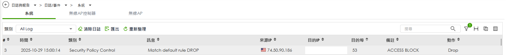所以目前手動將NET 上TCP 53PORT關閉,並在安全策略中加一條TCP53BLOCK的規則才擋住。