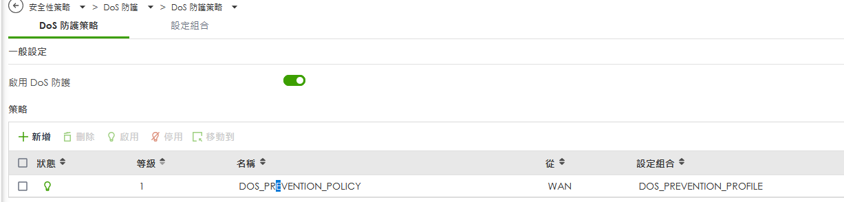 目前正受到大量的port 53攻擊,有開起基本的DOS防護,不知道是否設定上有問題?在LOG上沒有防護Drop的資料。