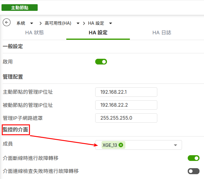 - 當設定的監控介面斷線時的切換日誌