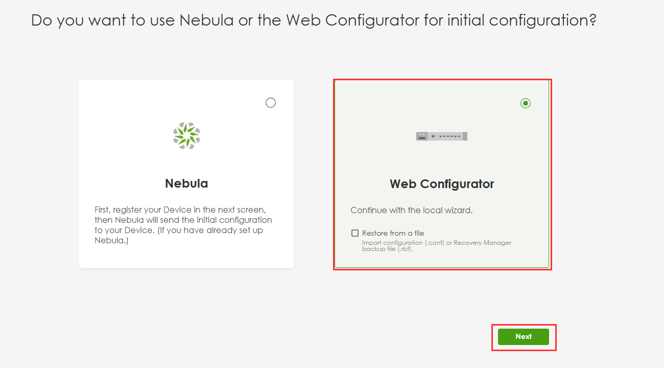 - 防火牆如果是初始化設定請選擇「Web Configurator」,並按照畫面指示操作。