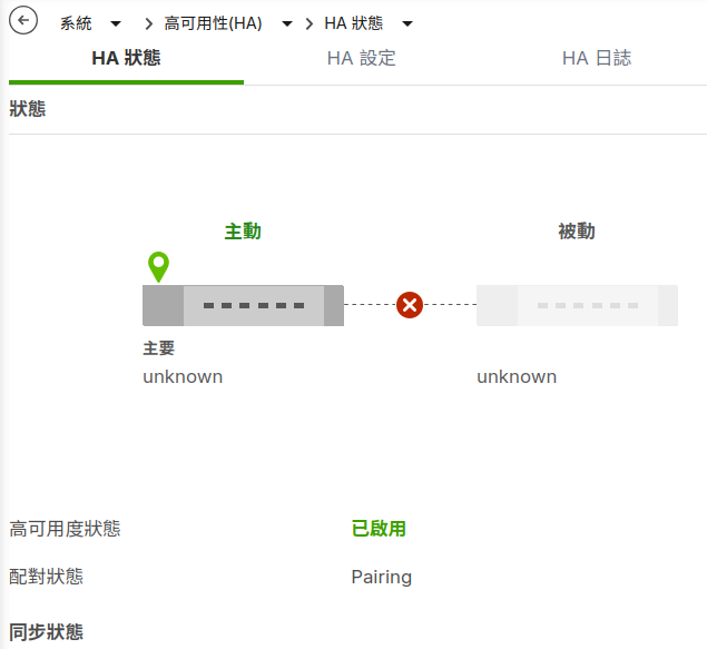 設定設備高可用性-被動防火牆(Secondary device)