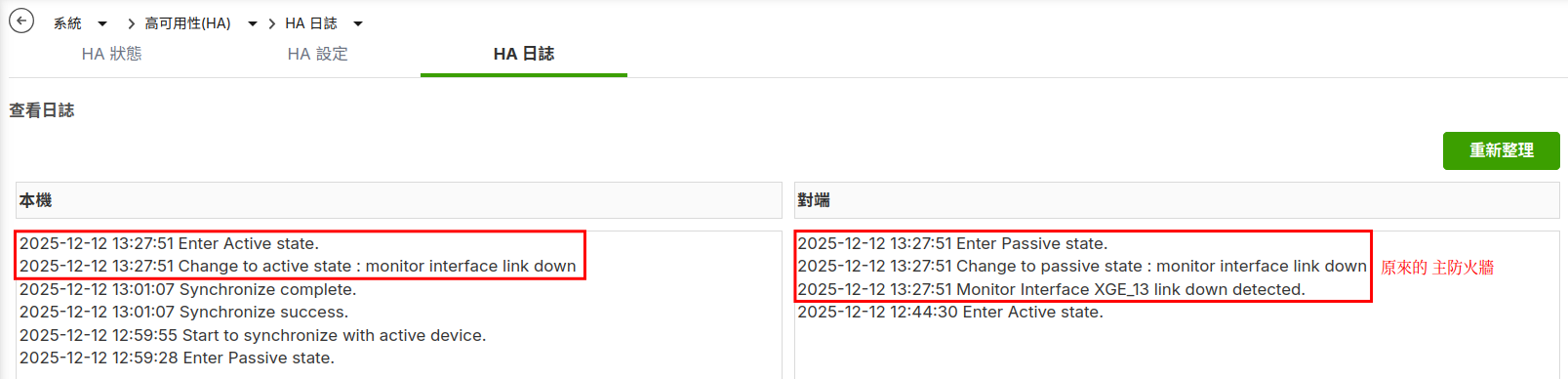 - 當主防火牆關機時的切換日誌