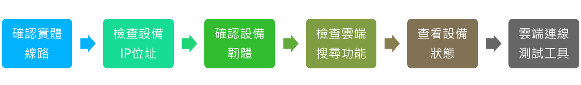 - 確認重點: 確保該網路線路具備連網能力,排查線路損壞或外部網路中斷之因素。