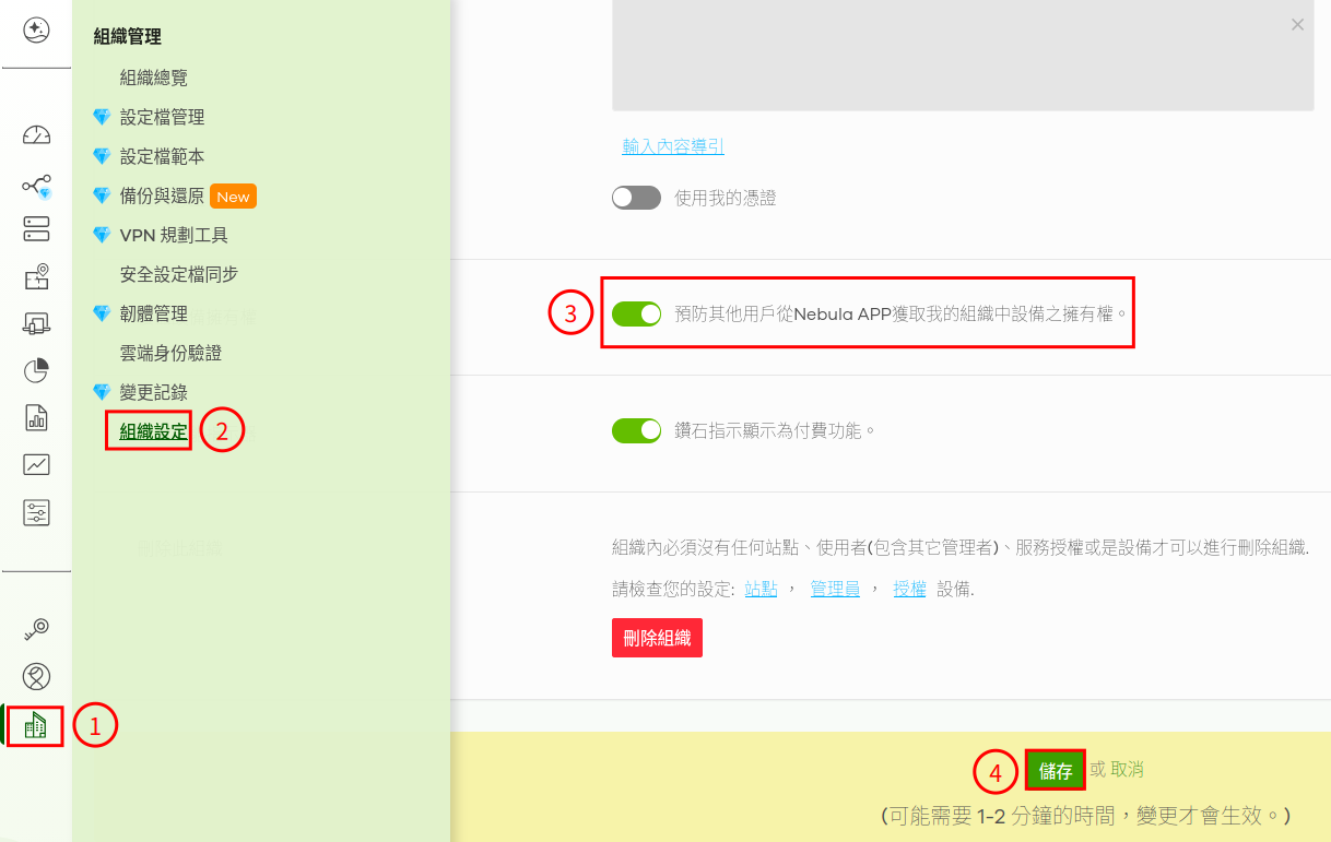 • 請目前所有者將該設備從其 Nebula 組織中移除。