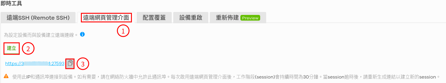 在即時工具選擇"遠端網頁管理介面"