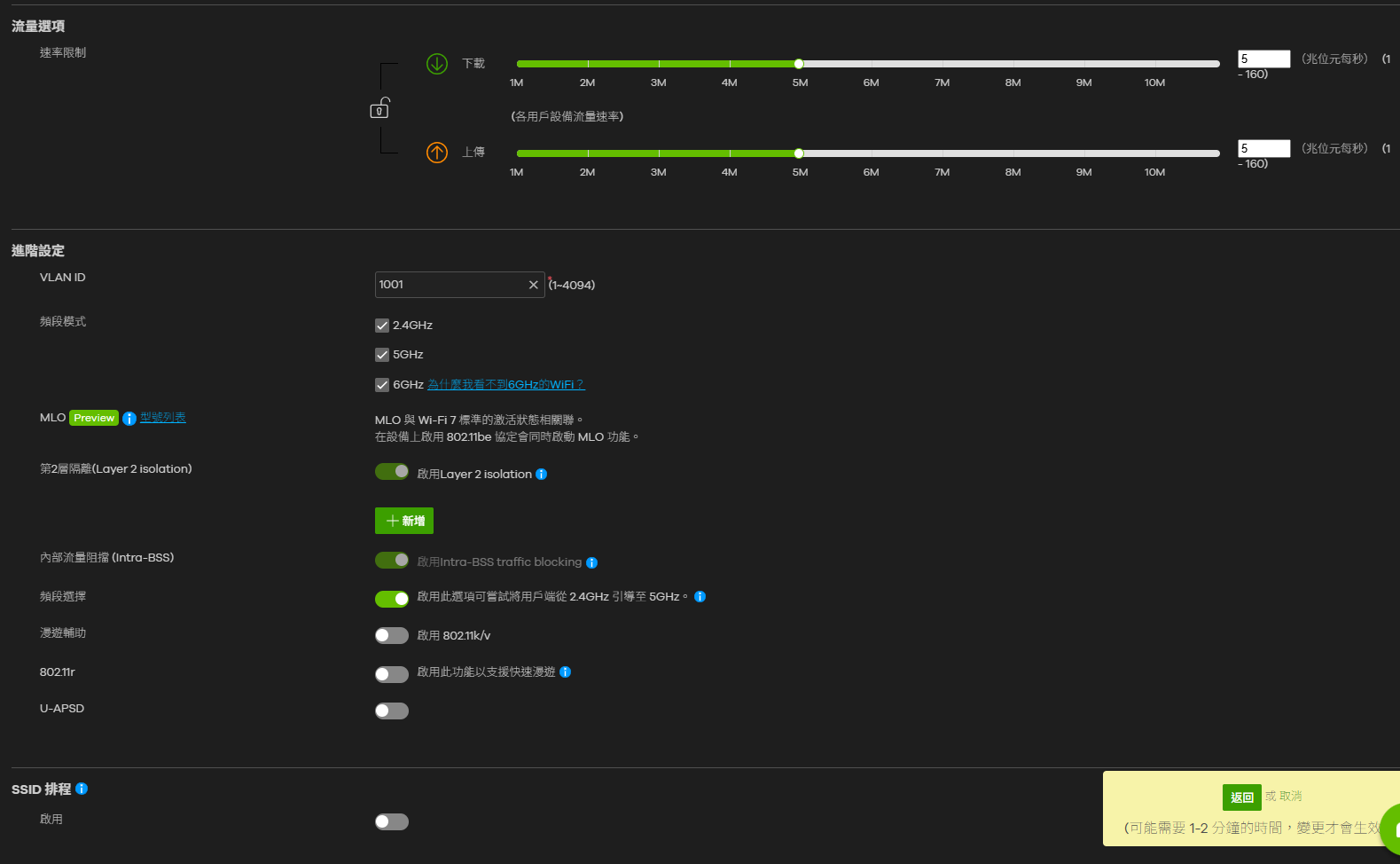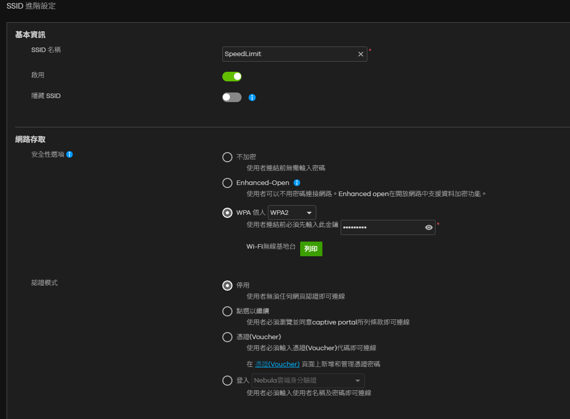 但2號SSID的部分,速率限制是有效的,2號SSID相關設定如下: