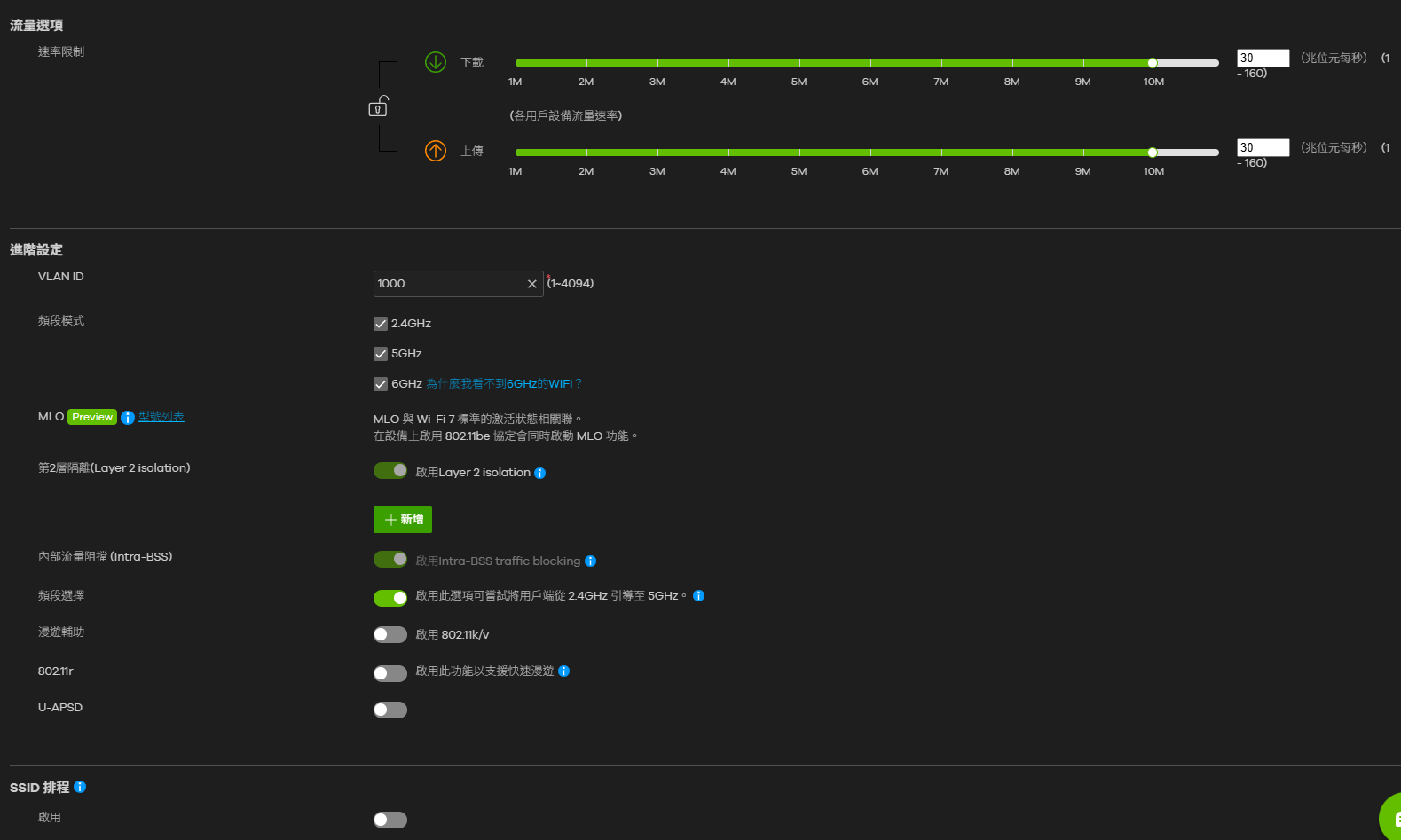 我路由器上的3號SSID部分速率限制的部分沒有生效。